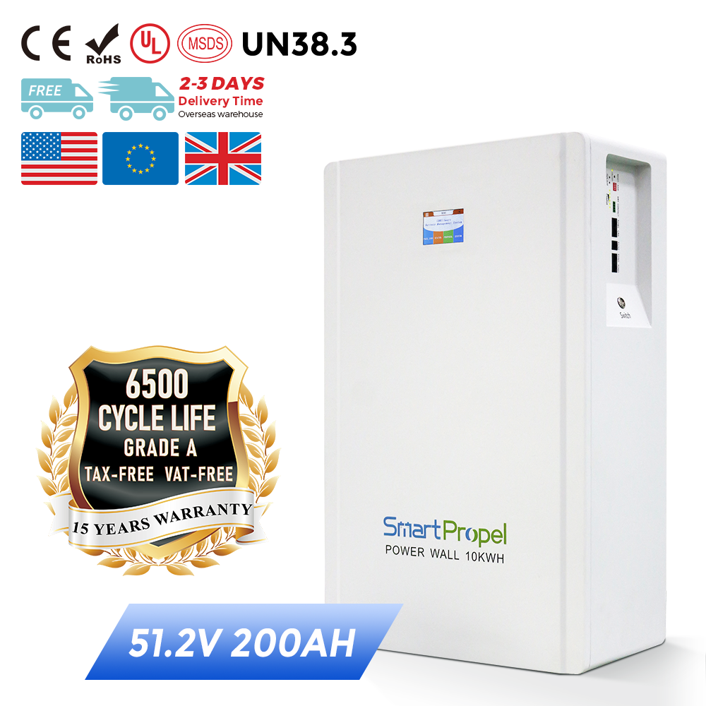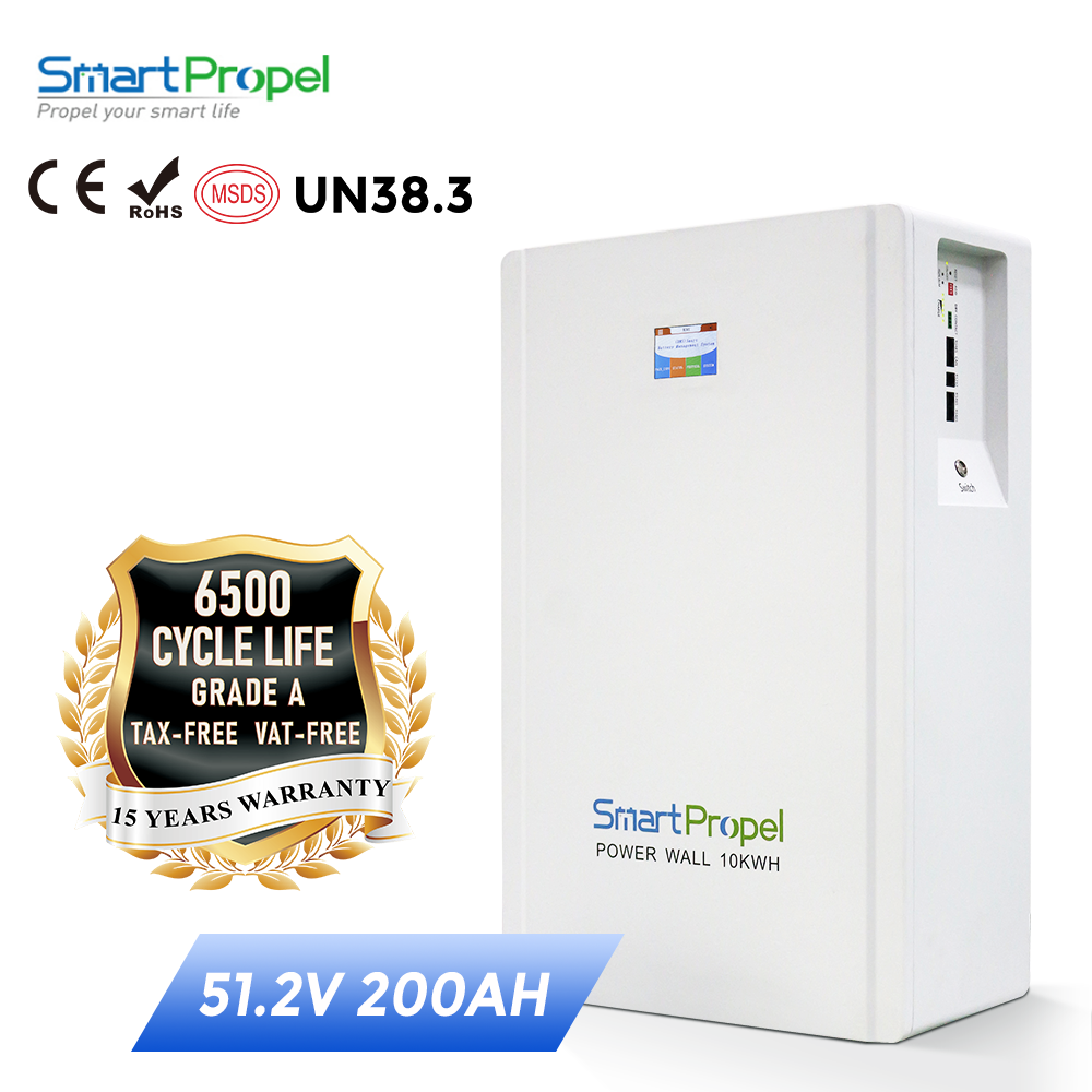 SmartPropel Powerwall 10kWh LiFePO4 Battery is a high-performance, wall-mounted lithium battery system designed for residential and small commercial solar energy storage applications. Featuring advanced LiFePO4 (Lithium Iron Phosphate) chemistry, it delivers superior safety, long cycle life, and stable performance.